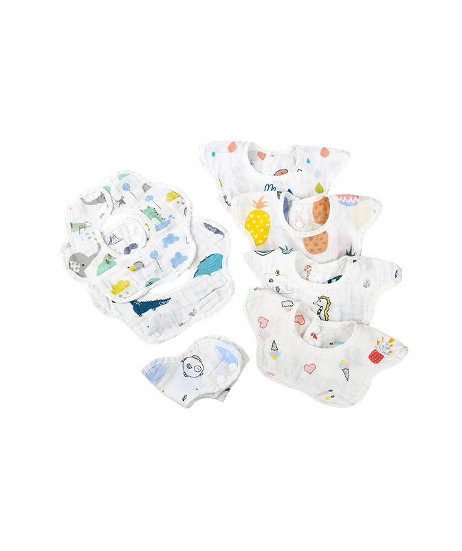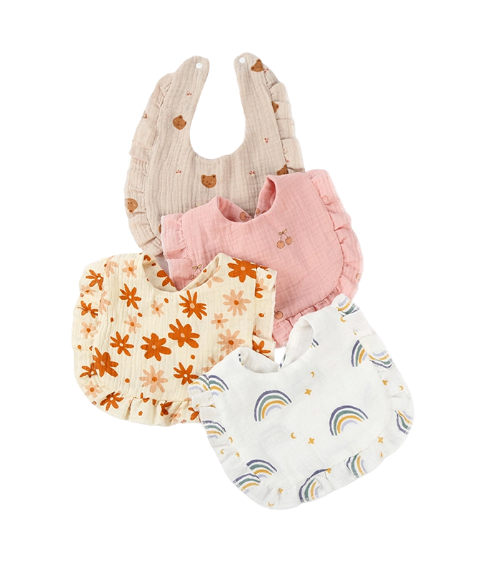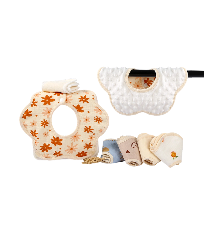 Babylätzchen sind ein unverzichtbarer Bestandteil der täglichen Pflege eines Babys. Sie verhindern wirksam, dass Nahrung und Speichel die Kleidung nass machen, und halten die Brust des Babys trocken. Die meisten Lätzchen bestehen aus weicher, hautfreundlicher reiner Baumwolle oder wasserdichten Materialien, wodurch sie bequem und leicht zu reinigen sind und sich für die tägliche Fütterung, das Ausführen oder die Verwendung während der Sabberphase eignen. Das Design, das eng um den Hals des Babys passt, macht es nicht nur leicht zu tragen, sondern reduziert auch Reibungsbeschwerden. Eine Vielzahl von Mustern und Farben kann auch Spaß beim Verkleiden machen, das Baby noch süßer machen und gleichzeitig sauber und bequem bleiben.