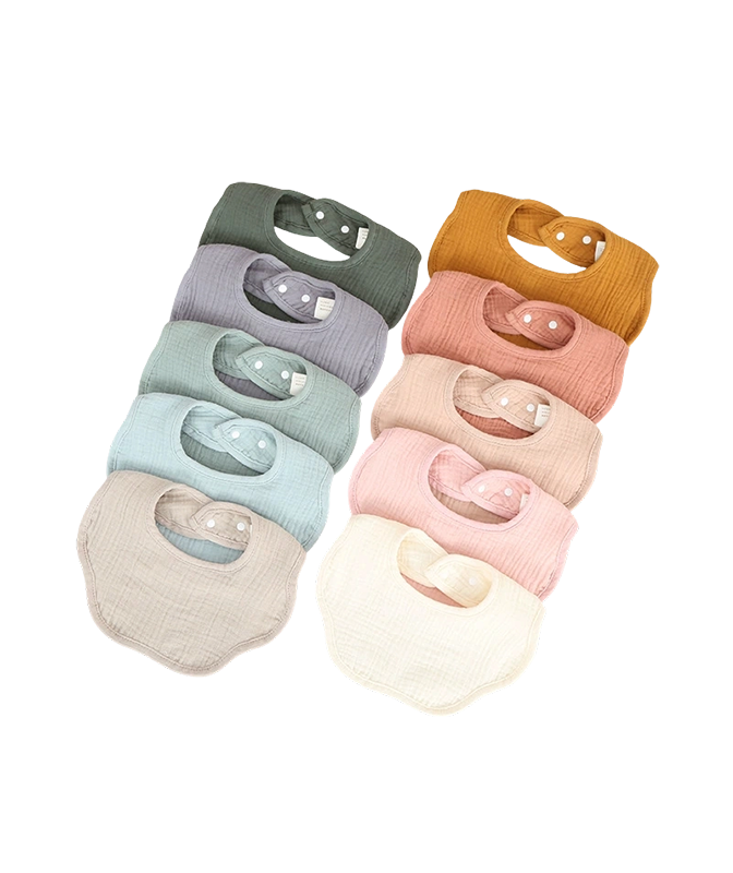 Babylätzchen sind ein unverzichtbarer Bestandteil der täglichen Pflege eines Babys. Sie verhindern wirksam, dass Nahrung und Speichel die Kleidung nass machen, und halten die Brust des Babys trocken. Die meisten Lätzchen bestehen aus weicher, hautfreundlicher reiner Baumwolle oder wasserdichten Materialien, wodurch sie bequem und leicht zu reinigen sind und sich für die tägliche Fütterung, das Ausführen oder die Verwendung während der Sabberphase eignen. Das Design, das eng um den Hals des Babys passt, macht es nicht nur leicht zu tragen, sondern reduziert auch Reibungsbeschwerden. Eine Vielzahl von Mustern und Farben kann auch Spaß beim Verkleiden machen, das Baby noch süßer machen und gleichzeitig sauber und bequem bleiben.