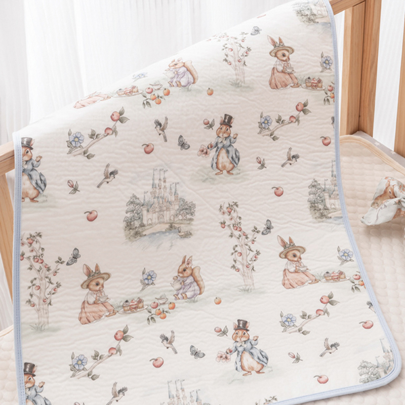 Diese wasserdichte Wickelunterlage mit Frottee-Verbundstruktur ist rutschfest und atmungsaktiv, doppelseitig und nimmt Feuchtigkeit schnell auf, sodass die mühsame Reinigung nasser Matratzen entfällt. Die untere Schicht besteht aus weichem Bambusfaser-Frottee, das Urin abweist und ein Durchsickern verhindert, sodass ein völlig trockenes und hygienisches Gefühl gewährleistet ist. Es ist formaldehydfrei, frei von Fluoreszenzmitteln und liegt weich auf der Haut, bietet Komfort und Wärme – ein Qualitätsprodukt der Klasse A. Die äußere Schicht ist weich und hautfreundlich, fühlt sich zart und angenehm an und ist perfekt für die empfindliche Haut eines Babys geeignet. Die Frotteestruktur ist sehr saugfähig und nimmt Urin- und Wasserflecken schnell auf, um die Oberflächenfeuchtigkeit zu reduzieren. Die Innenschicht verhindert effektiv das Durchsickern und hält Bettwäsche und Kleidung trocken und sauber. Insgesamt ist es atmungsaktiv, leicht, leicht zu reinigen, langlebig und verformungsbeständig und eignet sich für die Pflege von Neugeborenen, das Windelwechseln und den täglichen Gebrauch zu Hause.