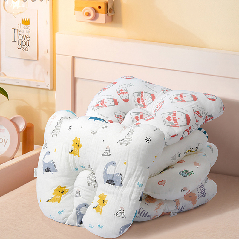Dieses babyspezifische Mullformkissen aus reiner Baumwolle der Klasse A verfügt über eine doppellagige Mulloberfläche für ein atmungsaktives und angenehmes Schlafgefühl. Die Füllung besteht aus dicker, voller, weicher und atmungsaktiver hochelastischer 3D-Perlenbaumwolle, die weich, bequem und saugfähig ist und mit jedem Waschen weicher und sanfter zur Haut wird. Seine wissenschaftlich gestaltete Zonenform passt sich der Kopfform des Babys an, unterstützt die Knochenentwicklung und beugt dem Flat-Head-Syndrom vor. Die weiche Füllung bietet Halt ohne Druck und der abnehmbare Kissenbezug ist leicht zu waschen. Es ist für alle Jahreszeiten geeignet und bietet Ihrem Baby einen komfortablen und pflegenden Schlaf.