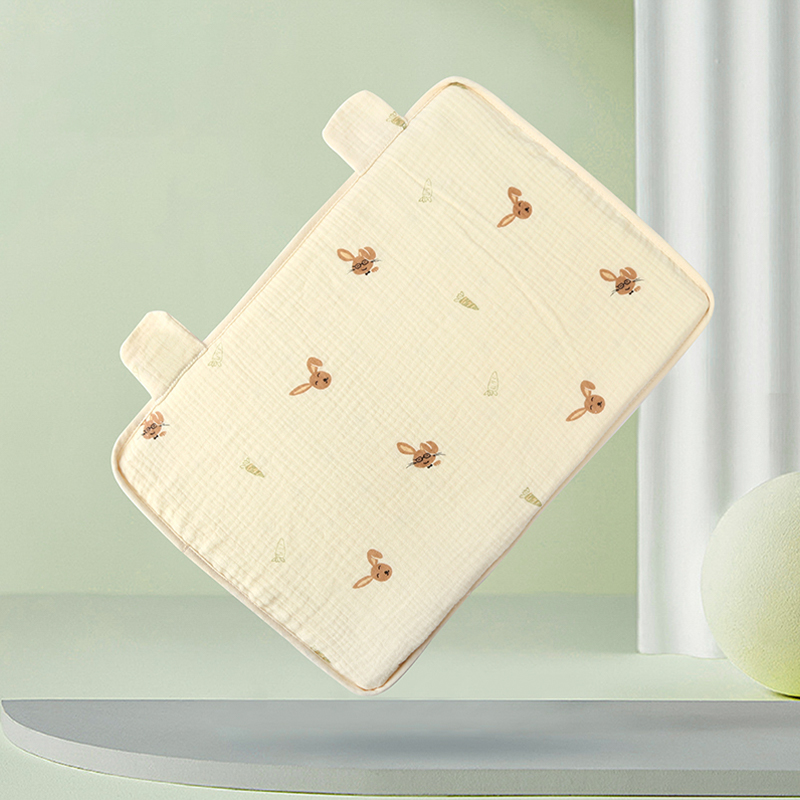 Dieser Kissenbezug besteht aus weichem und atmungsaktivem Kreppstoff und fühlt sich zart und glatt auf der Haut an. Seine natürlichen Falten sorgen für ein leichtes und atmungsaktives Tragegefühl, perfekt für die empfindliche Haut von Kindern. Die erste Schicht ist ein weicher, bequemer Kissenbezug aus Baumwollkrepp, der sich der Haut anpasst. Die zweite Schicht ist eine schützende Innenhülle, die das Kissen staubfrei hält und den Innenkern schützt. Die dritte Schicht ist ein weicher, federnder Kissenkern aus hydrophiler Baumwolle, der die Halswirbelsäule beruhigt und die Ohren angenehm beruhigt, ein Gefühl der Sicherheit vermittelt und dem Baby hilft, ruhig einzuschlafen. Die Höhe des Kissens ist moderat und passt sich der Krümmung von Kopf und Nacken an, um bequemen Halt zu bieten und dem Baby zu helfen, sich im Schlaf zu entspannen. Die Kissenoberfläche ist mit einem frischen Blumendruck in sanften, angenehmen Farben verziert, der für eine verspielte Note sorgt. Insgesamt ist es atmungsaktiv, bequem, langlebig und verformungsbeständig, sodass es für den täglichen Schlaf und das Nickerchen von Kindern geeignet ist.