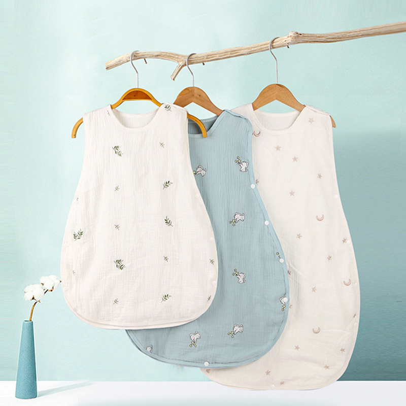 Der bestickte Schlafsack aus Krepp besteht aus 100 % Krepp-Baumwollgarn und ist mit sechs Lagen Gaze versehen. Dadurch ist er weich, hautfreundlich und atmungsaktiv und bietet Ihrem Baby eine warme und bequeme Hülle. Die Druckknöpfe an den Schultern erleichtern das An- und Ausziehen, auch bei nächtlichen Wechseln. Die einteilige Konstruktion und das vollständig offene Design ermöglichen Ihrem Baby Bewegungsfreiheit und gewährleisten gleichzeitig Sicherheit und Komfort die ganze Nacht über. Exquisite Stickmuster verleihen dem Schlafsack einen Hauch von Spaß und Optik und machen ihn nicht nur praktisch, sondern auch bezaubernd. Die ganze Nacht warm eingewickelt verhindert es Tritte und Schüttelfrost, schützt die empfindliche Haut Ihres Babys und gibt den Eltern Seelenfrieden. Dieser Schlafsack aus bestickter Weste aus Krepp ist eine unverzichtbare und durchdachte Wahl für den Schlaf und das Wachstum Ihres Babys.