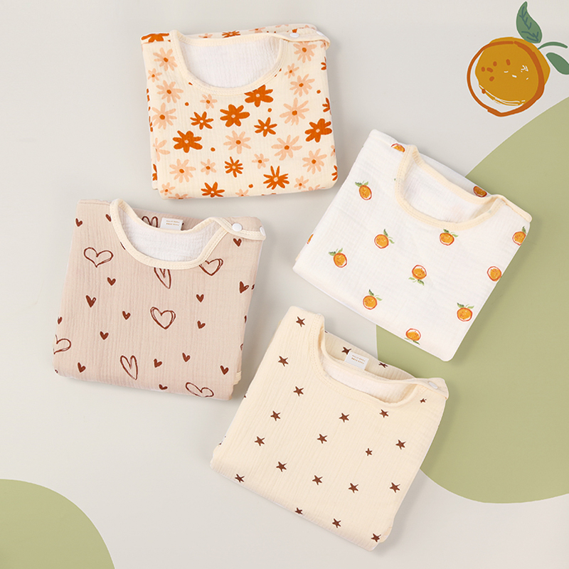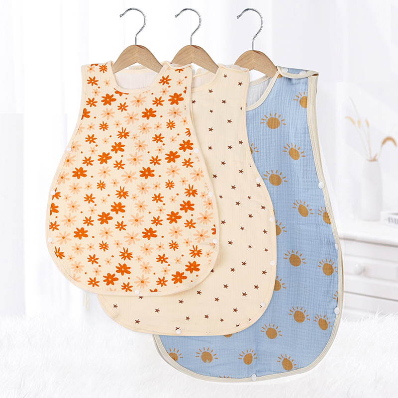 Der Schlafsack mit Weste und Kreppmuster besteht aus 100 % Krepp-Baumwollgarn, ist weich, hautfreundlich und hoch atmungsaktiv. Sechs Schichten Gaze sorgen für eine warme und bequeme Hülle und schützen die empfindliche Haut Ihres Babys. Die Druckknöpfe an den Schultern erleichtern das An- und Ausziehen, auch nachts, und machen es für Eltern bequem und problemlos. Die einteilige Konstruktion in Kombination mit dem vollständig offenen Design gewährleistet die Bewegungsfreiheit und Sicherheit Ihres Babys, reduziert jegliches Gefühl der Einschränkung und macht es für den nächtlichen Gebrauch geeignet. Das schöne und lebendige gedruckte Muster verleiht dem Leben Ihres Babys Spaß und kindlichen Charme. Dieser leichte, atmungsaktive, warme und praktische Schlafsack mit Kreppmuster eignet sich sowohl für den täglichen Schlaf als auch zum Tragen beim Ausgehen. Es ist ein unverzichtbares Stück bequemer Schlafausrüstung für das Wachstum Ihres Babys und sorgt jede Nacht für eine sichere und warme Nacht.