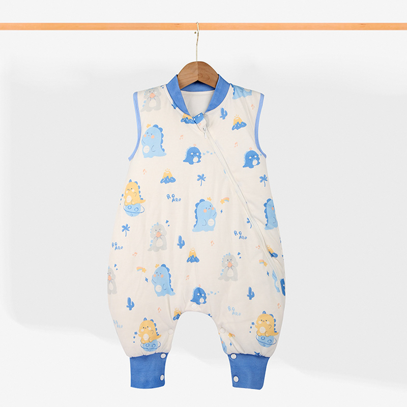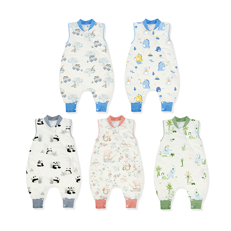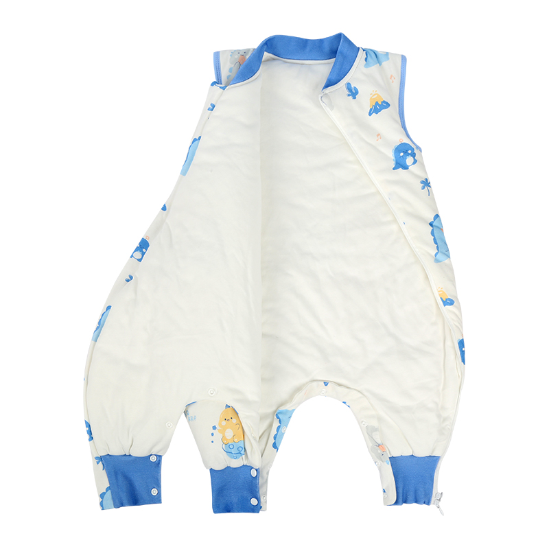 Diese Schlafsäcke bestehen typischerweise aus reiner Baumwolle oder Bambus-Baumwoll-Mischungen. Reine Baumwolle ist weich, hautfreundlich und atmungsaktiv und hält die Haut des Babys trocken; Bambus-Baumwoll-Mischungen kombinieren die antibakteriellen und feuchtigkeitsableitenden Eigenschaften von Bambusfasern mit dem Komfort von Baumwolle und werden beim Tragen immer weicher. Der ärmellose Westenstil schränkt die Armbewegungen des Babys nicht ein, sodass es sich leicht umdrehen und mit den Beinen ausschlagen kann, sodass es sich im Schlafsack frei bewegen kann und gleichzeitig die Gefahr von Verhedderungen durch zu lange Ärmel vermieden wird. Anti-Kick-Design: Diese Art von Schlafsack verhindert effektiv, dass das Baby von der Decke stößt, und hält es warm, egal wie viel es sich bewegt. Dadurch müssen die Eltern nachts nicht mehrmals aufstehen, um es zuzudecken, was es bequemer macht. Detailliertes Design: Der Ausschnitt ist normalerweise weich eingefasst, um ein Scheuern unter dem Kinn des Babys zu verhindern; Der Saum ist verbreitert, sodass sich das Baby zusammenrollen kann, ohne dass es eingeengt wird. Der Schritt verfügt über ein halboffenes Knopf- oder Reißverschlussdesign, sodass Eltern die Windeln leicht wechseln können, ohne den Schlafsack vollständig ausziehen zu müssen.