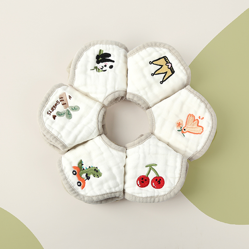 Dieses speziell für Babys bestickte Lätzchen mit Blütenblättern besteht aus hochwertigem, reinem Baumwollstoff der Klasse A, ist weich, hautfreundlich und atmungsaktiv und pflegt sanft empfindliche Haut. Die Cartoon-Stickerei an einer Ecke des Blütenblatts ist schlicht und frisch, während die dreidimensionale Blütenblattform einen süßen und auffälligen Touch verleiht und die Gesamtqualität verbessert. Die wasserdichte und auslaufsichere Innenschicht verhindert wirksam Milch- und Suppenflecken und die verstellbaren Druckknöpfe sind für verschiedene Babyalter geeignet. Es ist langlebig, waschbar und verformt sich nicht so leicht. Das Gesamtdesign eignet sich sowohl für die tägliche Fütterung als auch zum einfachen Tragen beim Ausgehen und macht es zu einem praktischen und bezaubernden Must-Have-Artikel für Ihr Baby.